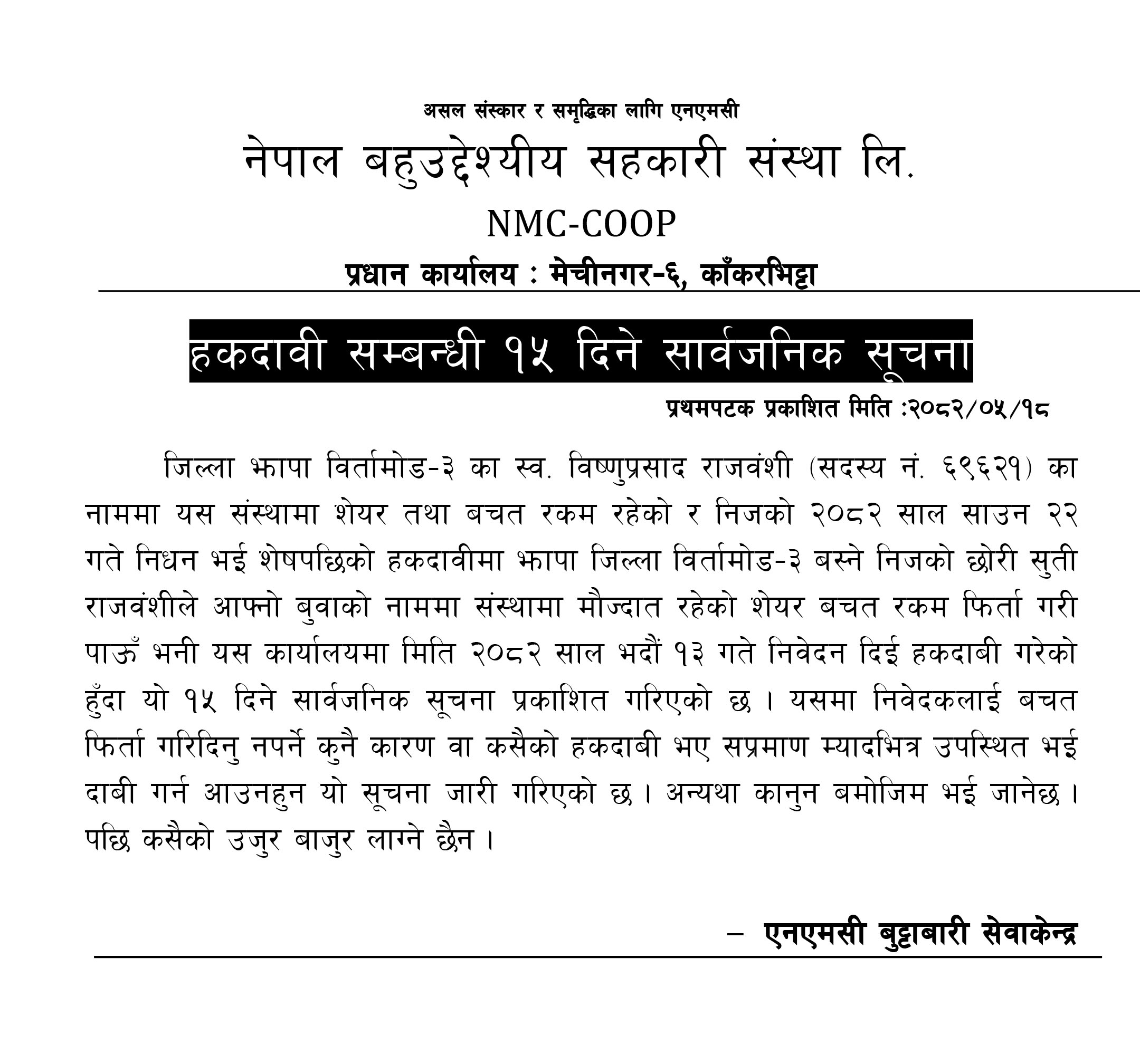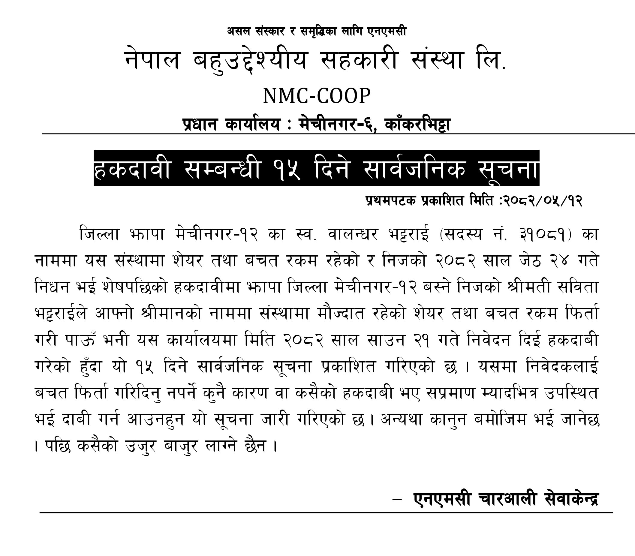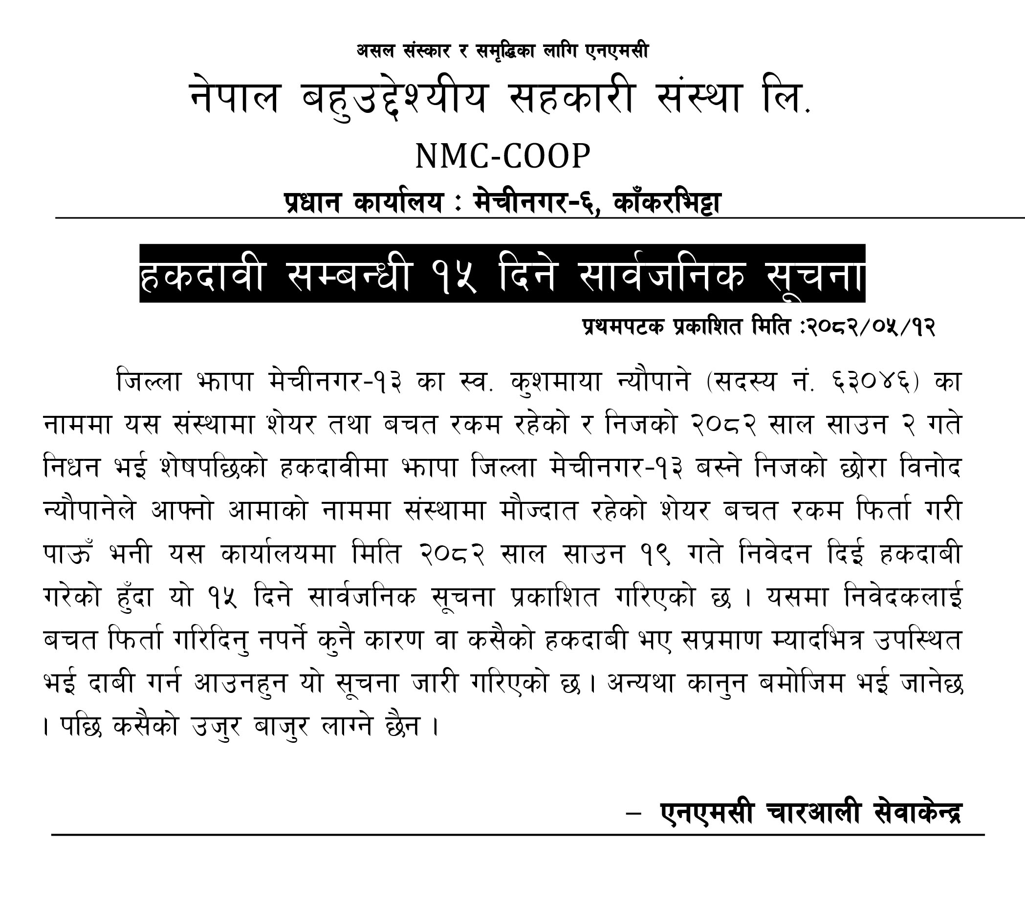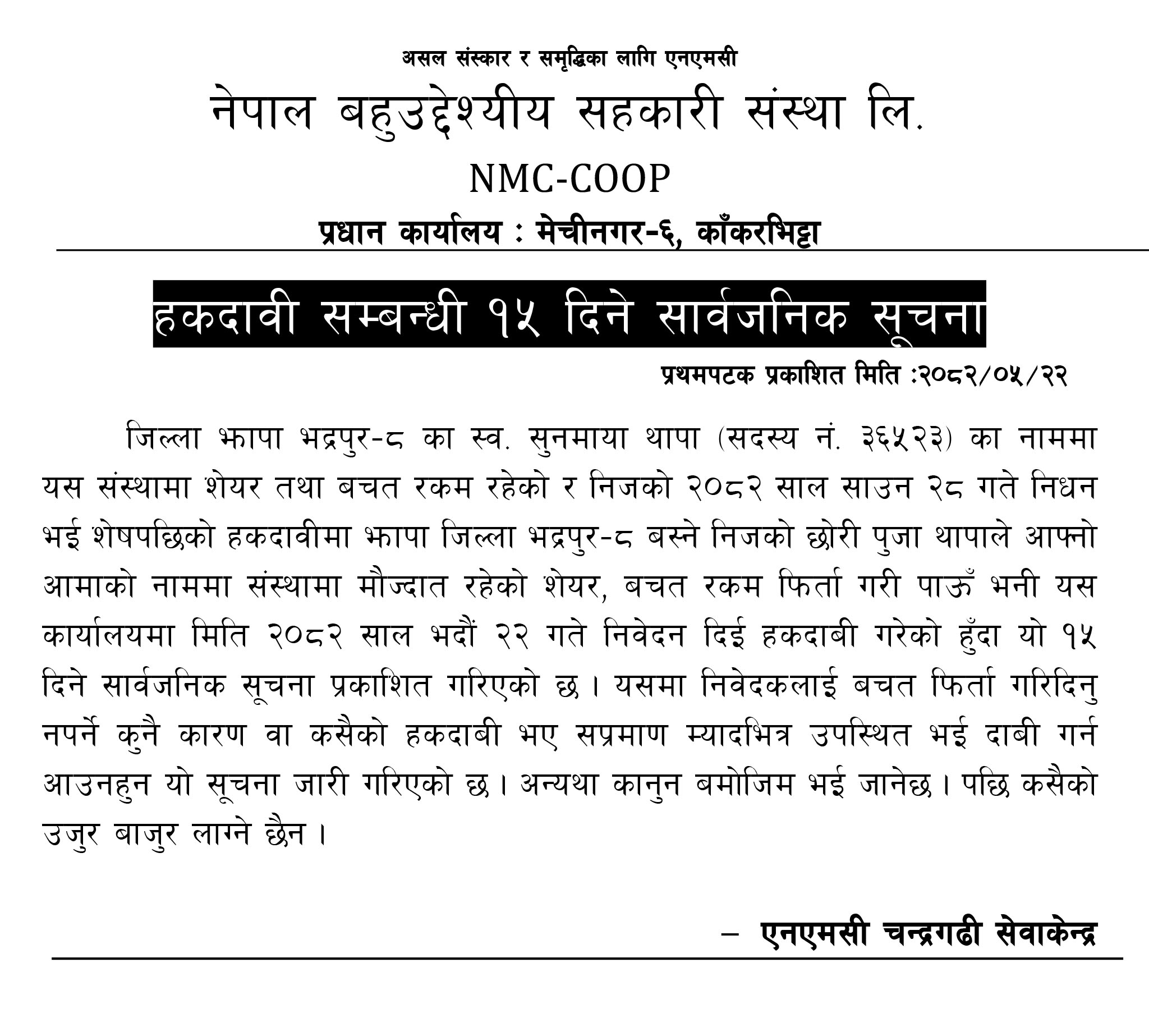 निक्षेप फिर्ता नगर्ने बिर्तामोडको स्वर्गिक साकोसमाथि उजुरी