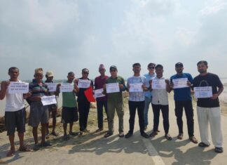 झापा,असोज २३ । बिगत १५ वर्षदेखि अलपत्र भइरहेको गौरीगंज र झापा गाउँपालिका जोड्ने कन्काई पुललाई तत्काल वनाउन सुरु गर्नु पर्ने माग राख्दै बिभिन्न नारा लेखिएका प्लेकार्डसहित स्थानीयवासीले...