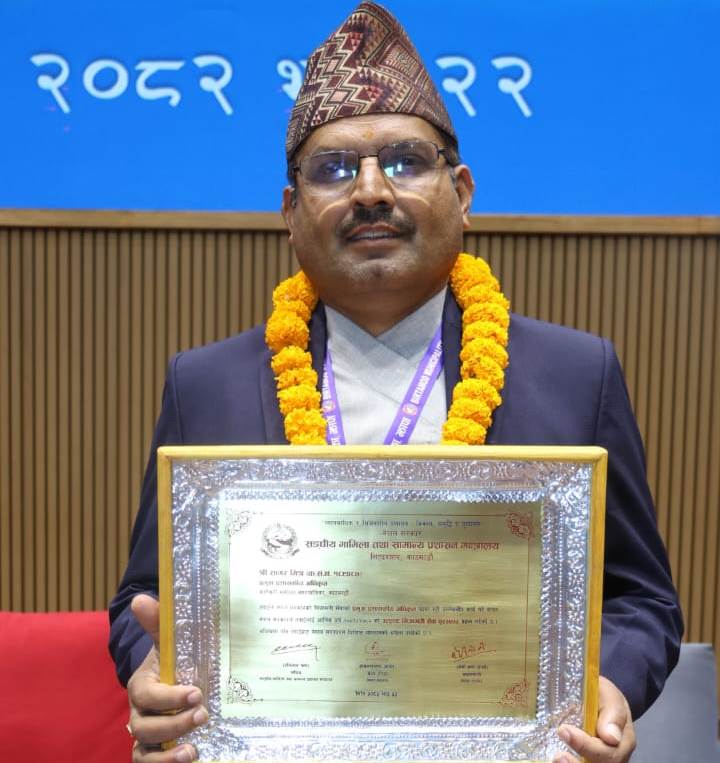 आज काठमाडौंमा संघीय मामला तथा सामान्य प्रशासन मन्त्रालयद्वारा आयोजित एक कार्यक्रममा देशैभरिमा उत्कृष्ट कर्मचारीको रुपमा १ लाख नगद पुरस्कारद्वारा उनलाई सम्मान गरिएको हो ।