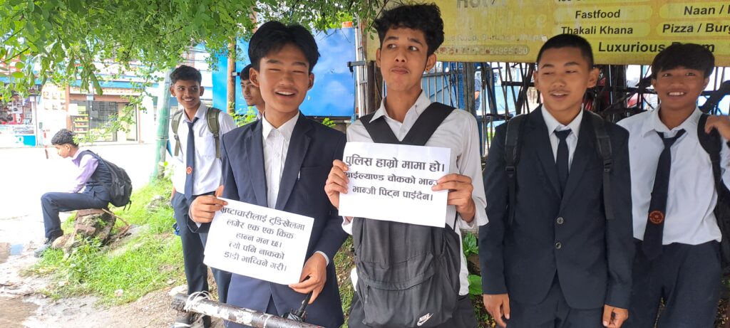 बिर्तामोडको वानस्टप मल अगाडि स्कुले पोशाकमा भेला भइरहेका विद्यार्थीहरुले अहिले बिहान ११ बजेदेखि प्रदर्शन गर्न लागेका हुन् । जसको अगुवाई युथ अफ झापाले गरिरहेको छ ।