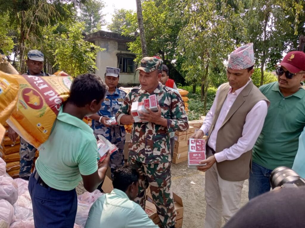 अरिदमन गण, चारआलीको २ वटा ७.५ टन टाटा ट्रकमा ४३ जना फौजमार्फत विर्तामोड र सुरुङ्गाबाट ढुवानी गरी इलाका प्रहरी कार्यालय कुमरखोदमा ती सामग्री डम्पिङ गरिएको थियो । त्यसैगरी विर्तामोड र सुरुङ्गामा राखिएका बाँकी राहत सामग्रीहरु आज अरिदमन गणको २ वटा ७.५ टन टाटा ट्रकमा ५० जना फौजमार्फत झापा गाउँपालिका वडा नं. २ स्थित इलाका प्रहरी कार्यालय कुमरखोद र वडा नं. २ को कार्यालयसँगै अवस्थित रेडक्रसको भवनमा ढुवानी गरिएको थियो ।