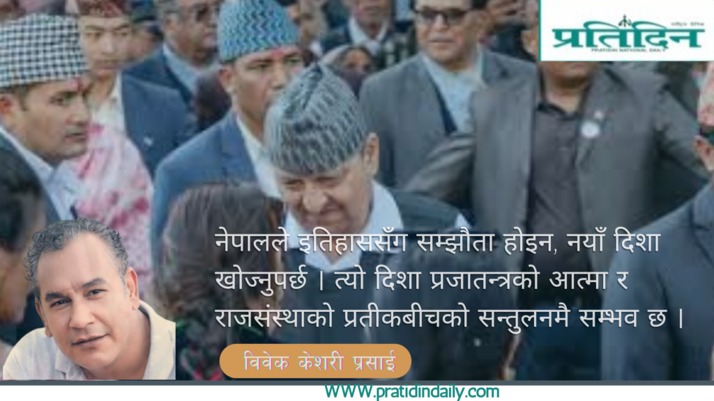 नेपालले इतिहाससँग सम्झौता होइन, नयाँ दिशा खोज्नुपर्छ । त्यो दिशा प्रजातन्त्रको आत्मा र राजसंस्थाको प्रतीकबीचको सन्तुलनमै सम्भव छ ।