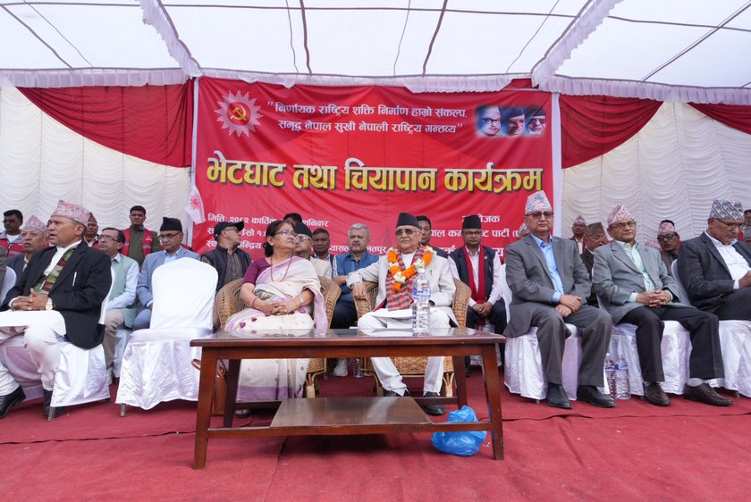 एमालेद्वारा पार्टी कार्यालयमा विजयदशमी, दीपावली, नेपाल संवत् र छठ लगायत पर्वहरूको अवसरमा आयोजित चियापान तथा शुभकामना कार्यक्रममा सहभागी हुन ओली त्यहाँ पुगेका हुन् ।