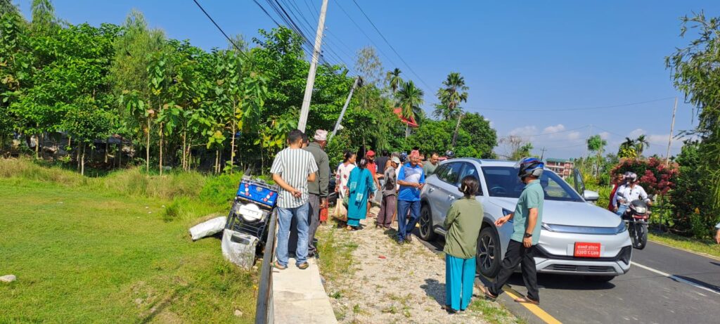 केहीवेरअघि आदर्शचौकबाट हल्दिवारीतर्फ जाँदै गरेको बागमती प्रदेश ०१–०३० च८६७७ नं को कारले गलत दिशामा गएर विपरित दिशाबाट आउँदै गरेको प्र १ –०१–००२ ह ७०२८ नं को सिटसिफारीलाई ठक्कर दिएको हो । सिटीसफारी सडक पश्चिम पल्टिएको छ ।