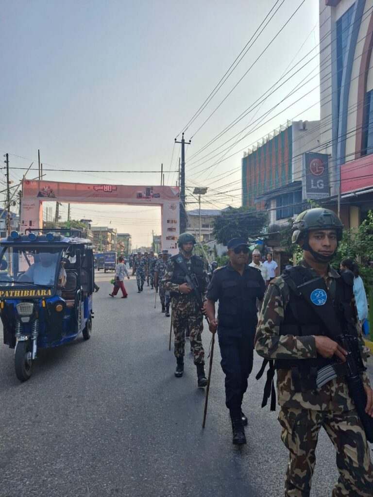 झापा, कात्तिक ७ । तिहार , छठ र त्यसपछिको सुरक्षा परिस्थितिलाई ध्यानमा राख्दै नेपाली सेनाले झापाका मुख्य बजारहरुमा संयुक्त गस्तीलाई तीब्रता दिएको छ ।