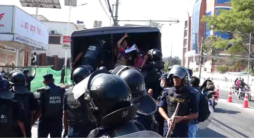 शनिबार माइतीघरमा पुगेकाहरूलाई प्रहरीले प्रदर्शन गर्नबाट रोक्दै नियन्त्रणमा लिएको हो ।