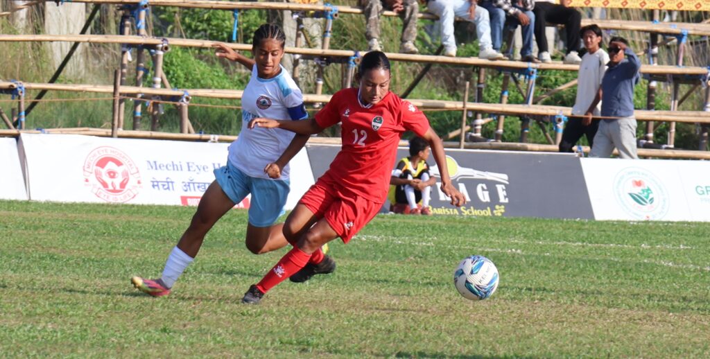 खेलको सुरुवाती चरणदेखि नै बल पोजिसनमा प्रभुत्व जमाएको आर्मीले लगातार आक्रमण गरिरह्यो । १० औँ मिनेटमा फरवार्ड विमला चौधरीले पोखराकी गोलकिपर गायत्री मल्ल बिट भएको अवस्थामा फिनिस गर्न नसके पनि १६ औँ मिनेटमा डिफेन्डर विमला विकको फ्रिकिकमा जेनिफर राना मगरले हेडिङ गोल गर्दै अग्रता दिलाइन् । उक्त फ्रिकिक उषा शाहीले दिपा राईमाथि गरेको फाउलपछि प्राप्त भएको थियो ।