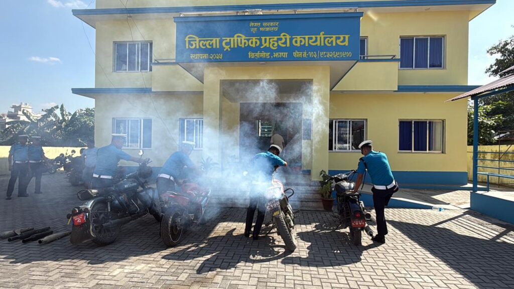 झापामा स्वरूप परिवर्तन गरी ठूलो आवाजमा मोटरसाइकल चलाउने ५१ वटा सवारी साधन कारबाहीमा परेका छन् । कात्तिक १ गतेदेखि चलाइएको अभियानमा त्यति धेरै मोटरसाइकल कार्वाहीमा परेको जिल्ला ट्राफिक प्रहरी कार्यालय झापाका प्रमुख प्रहरी निरीक्षक सन्तोष राईले बताए । उनले जिल्ला ट्राफिक प्रहरी कार्यालय बिर्तामोडबाट ३१ , ट्राफिक प्रहरी कार्यालय दमकबाट ५ , ट्राफिक प्रहरी कार्यालय चन्द्रगढीबाट ६ , ट्राफिक प्रहरी कार्यालय सुरुङ्गाबाट २ , ट्राफिक प्रहरी कार्यालय काँकडभिट्टाबाट ५ र ट्राफिक प्रहरी पोष्ट शनिश्चरेबाट २ वटा मोटरसाइकललाई नियन्त्रणमा लिई कार्वाही गरिएको जानकारी दिए । उनका अनुसार त्यस कार्वाहीबाट १७ लाख ७३ हजार ५०१ रुपैयाँ राजश्व संकलन भएको छ ।