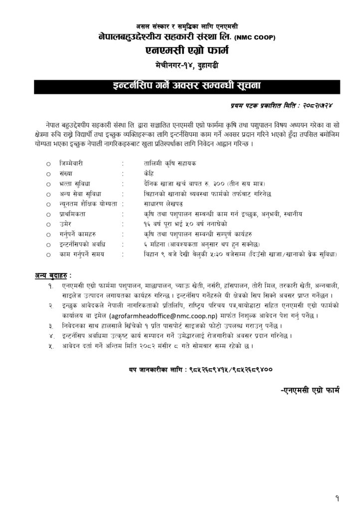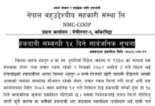 एनएमसी एग्रो फार्मको इन्टर्नसिप गर्ने अवसर सम्वन्धी सूचना November 10, 2025 Views: 4 RELATED ARTICLESMORE FROM AUTHOR एनएमसीको मेटल ड्रवर (सामग्री ) सम्बन्धी कोटेशन आह्वान एनएमसीको मसलन्द सामग्री खरिद तथा छपाई सम्बन्धी कोटेशन आह्वान एनएमसीको हकदावी सम्बन्धी १५ दिने सूचना प्रतिक्रिया Cancel reply कृपया प्रतिक्रिया लेख्नुहोस्! कृपया आफ्नो नाम लेख्नुहोस् तपाइको इमेल ठेगाना गलत छ! कृपया आफ्नो इमेल ठेगाना लेख्नुहोस्