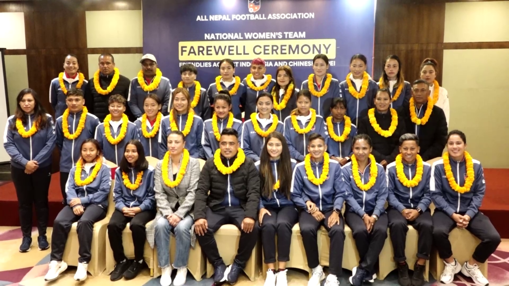 आइतबार काठमाडौंमा आयोजित एक कार्यक्रमकाबीच एन्फा पदाधिकारीहरूले नेपाली राष्ट्रिय महिला फुटबल टोलीलाई बिदाइ गरेका हुन्।