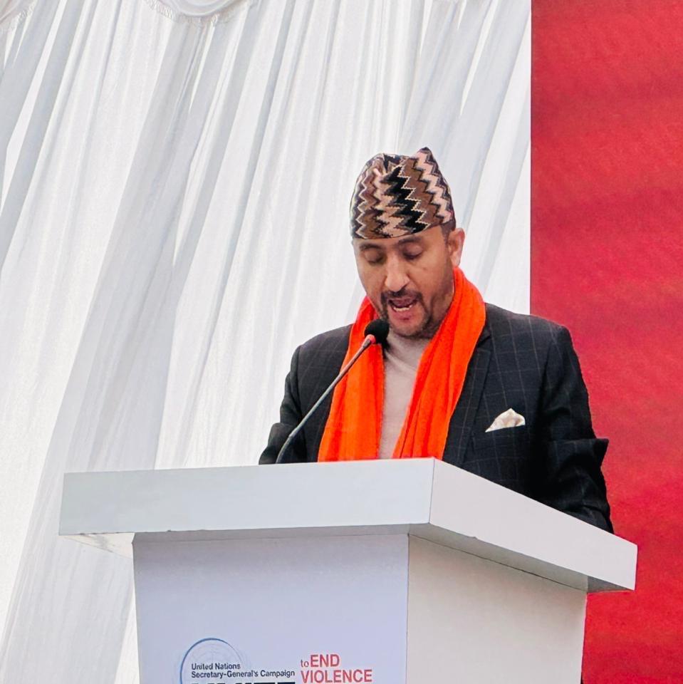 ‘लैङ्गिक हिंसाविरुद्धको १६ दिने अभियान’ को मंगलबार शुभारम्भ गर्दै उनले महिला र बालिकाविरुद्ध हुने डिजिटल हिंसा अन्त्यका लागि सबै एकजुट हुनुपर्नेमा जोड दिए। यस वर्षको यो दिवसको विश्वव्यापी नारा सान्दर्भिक रहेको भन्दै उनले डिजिटल दुनियाँ अब दैनिक जीवनभन्दा अलग नरहेको बताए।