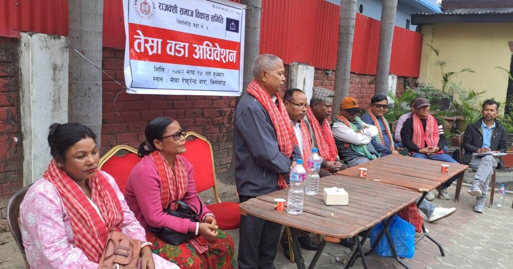 राजवंशी समाज विकास समिति बिर्तामोड ४ को आज भएको तेस्रो वडा अधिवेशनले पवन राजवंशीको अध्यक्षतामा १७ सदस्यीय वडा समिति सर्वसम्मत गठन गरेको हो ।