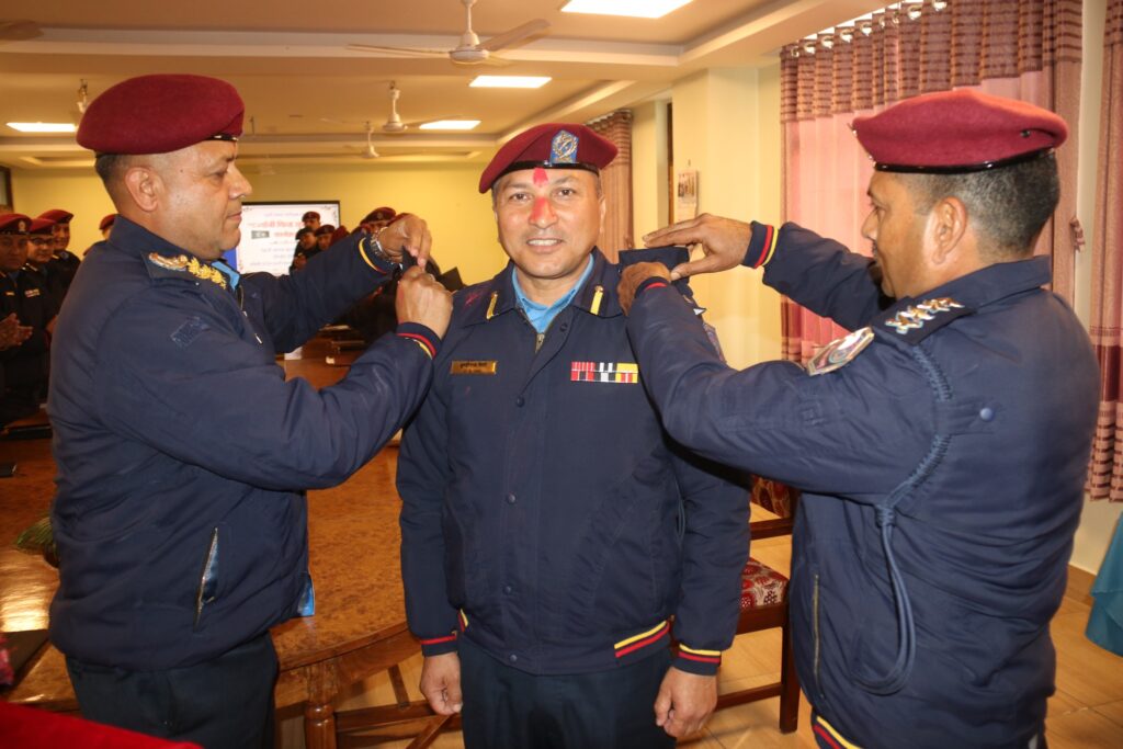 गिरीलाई आइतवार एक कार्यक्रमका बिच कोशी प्रदेश प्रहरी प्रमुख प्रहरी नायव महानिरीक्षक विनोद घिमिरेले दर्ज्यानी चिन्ह प्रदान गरेका छन् ।पदोन्नति भएका प्रहरी नायव उपरीक्षक गिरीलाई प्रहरी नायव महानिरीक्षक घिमिरेले हार्दिक बधाईसहित धन्यवाद दिएका छन् ।कार्यक्रममा प्रहरी वरिष्ठ उपरीक्षक योगेन्द्र सिंह थापालगायत सिनियर तथा जुनियर प्रहरी अधिकृत तथा प्रहरी कर्मचारीहरुको उपस्थिति रहेको थियो ।