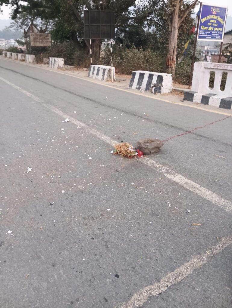 शिवसताक्षी नगरपालिका वडा नं. १० स्थित माईधारको कन्काई पु्लको पश्चिमतर्फ मुख्य राजमार्गमा बोरालाई डोरी र कालो टेपले पोका पारि तार जडान भएको शंकास्पद बस्तु आज बिहान फेला परेको थियो ।