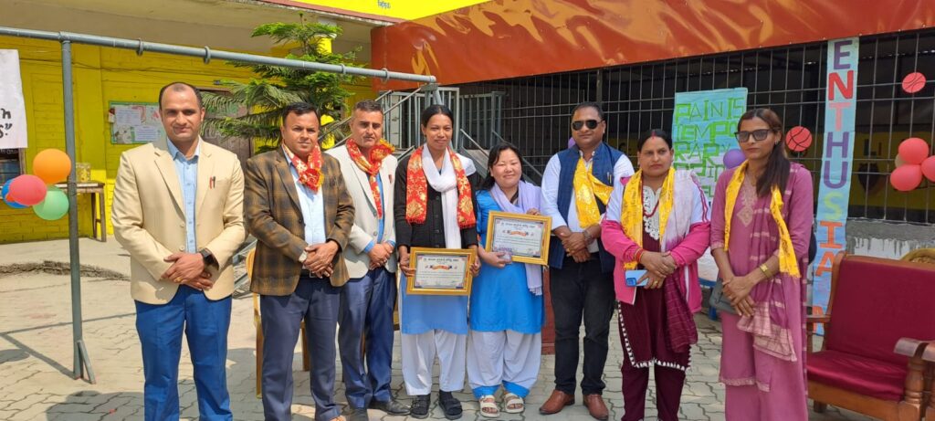 उत्कृष्ट कार्य गरेको भन्दै प्राइमरी तहकी नेहा राजवंशी र प्रि–प्राइमरी तहकी भद्रशिला राईलाई नगदसहित सम्मान गरिएको हो । विद्यालय व्यवस्थापन समितिका अध्यक्ष इन्दिरा अधिकारीको अध्यक्षतामा भएको कार्यक्रममा प्रमुख अतिथि बिर्तामोड नगरपालिका वडा नं.७ का वडाध्यक्ष अविरल कृष्ण खरेल, विद्यालयका प्रधानाध्यापक दीपक चम्लागाईं, संचालकहरु बद्री बास्कोटा ,डिल्लीराम चम्लागाईले सम्मान गरेका थिए ।