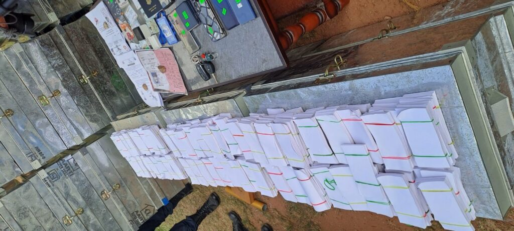 उनीहरुले मेचीनगर नगरपालिका वडा न ४आमडाँगीमा लुकाई राखेको २१ वटा टिनको बक्सा र २३७ बन्डल नोट आकारको सादा कागज बरामद गरिएको छ । उनीहरुले सो कागजबाट १२ करोड नक्कली नोट छाप्ने योजना बनाएको कुरा अनुसन्धानबाट खुलेको छ । उनीहरुको साथबाट सरकारी छाप तथा दस्तखत किर्ते गरिएको किर्ता कागजातहरु, नेपाल सरकारको निशान छाप , नेपाल प्रहरीको किर्ते गरी बनाइएको परिचयपत्र र नक्कली सरकारी डकुमेन्टहरु समेत बरामद भएको छ।