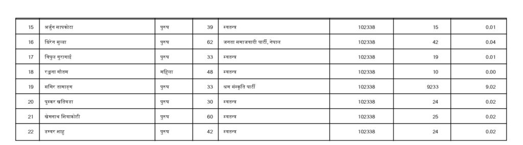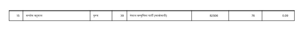 त्यस्तै क्षेत्र नं ४ मा राप्रपाका भक्तिप्रसाद सिटौला , नेकपाका पुरुषोत्तम चुडालसहित १३ जना उम्मेदवारहरुले सदर मतको १० प्रतिशत मत ल्याउन सकेनन् ।