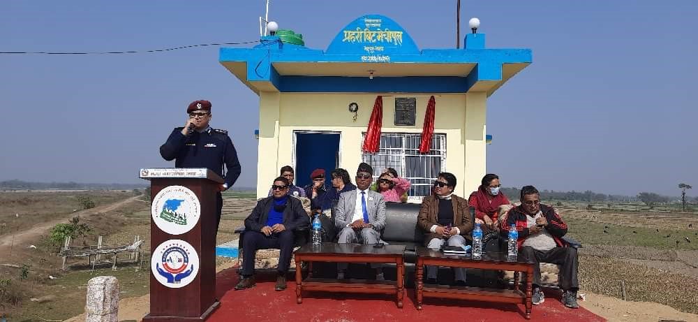 सीमा अतिक्रमण र तस्करी गतिविधि रोक्न निर्माण गरिएको प्रहरी बिटको भद्रपुर नगरपालिकाका नगर प्रमुख जीवनकुमार श्रेष्ठले उद्घाटन गर्दै भवन हस्तान्तरण गरेका हुन् । मेची पुलपारि प्रहरी चेकपोष्ट निर्माण उपभोक्ता समितिले प्रहरी बिट निर्माणस्थलमै आयोजना गरिएको कार्यक्रममा निर्माण उपभोक्ता समितिका अध्यक्ष मनोज श्रेष्ठले नगर प्रमुख श्रेष्ठलाई भवन जिम्मा लगाएका थिए । त्यसपछि श्रेष्ठले जिल्ला प्रहरी कार्यालयका प्रहरी उपरीक्षक सानुराम भट्टराईलाई भवनको साँचो जिम्मा दिदैं भवन हस्तान्तरण गरेका हुन् ।