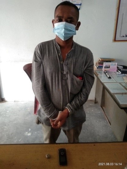 पक्राउ पर्नेमा गौरादह १ बस्ने ३७ वर्षिय कृष्णकुमार ताजपुरिया रहेका छन् । आज दिउँसो ३ बजे गौरादह बजारमा इलाका प्रहरी कार्यालय दमकबाट खटिएको प्रहरी टोलीले मे.७ प. ६७६७ नं. को मोटरसाईकल चालक ताजपुरियालाई खानतलासी गर्दा ६ ग्राम ब्राउनसुगर फेला पारेको थियो । उनलाई नियन्त्रणमा लिई आवश्यक सोधपुछ गर्दा गौरादह २ बस्ने ३९ वर्षिय सुमनकुमार कार्कीबाट किनेको खुलेपछि कार्कीको घरको सुत्ने कोठामा खानतलासी गर्दा खुल्ला प्लाष्टिकभित्र ३० ग्राम ब्राउनसुगर बरामद गरिएको थियो । कार्की तत्काल फरार रहेको हुँदा कडाईका साथ खोजतलास भईरहेको र ताजपुरियालाई कानुनी प्रकृयाको लागि ईप्रका. दमकमा राखिएको जिल्ला प्रहरी कार्यालयले जनाएको छ ।