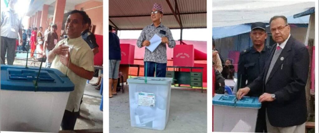 नेपाली कांग्रेसका महामन्त्री विश्वप्रकाश शर्माले मेचीनगर नगरपालिका –९ को कविशिरोमणी मावि मतदान केन्द्रबाट आज बिहान ८.३५ बजे मतदान गरेका छन् । त्यस्तै राष्ट्रिय प्रजातन्त्र पार्टीका केन्द्रीय अध्यक्ष राजेन्द्र लिङ्देनले हल्दिवारी १ को वडा कार्यालय मतदान केन्द्रबाट मतदान गरेका छन् ।