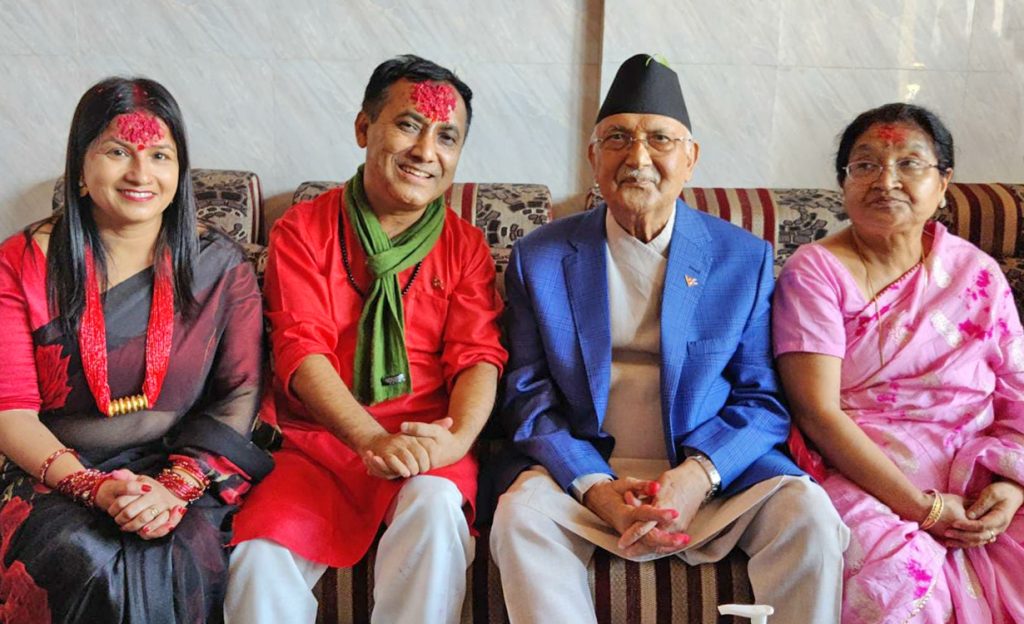 चुनावी रौनकले छोइसकेको अवस्थामा दशैं मानेर गृहजिल्ला झापाबाट काठमाडौं फर्कने क्रममा भद्रपुर विमानस्थलमा ओली र शर्माको जम्काभेट भएको हो ।