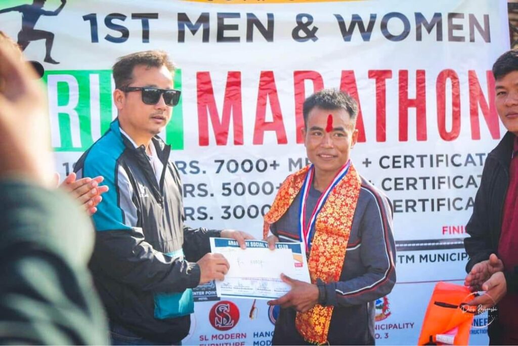 बिर्तामोड ३ को धौला पुलदेखि बिर्ताबजार हुँदै मुक्तिचोक पुगेर पुनः बिर्तामोड नगरपालिकाको कार्यालयसम्म करिव ६ किलोमिटर दुरीमा म्याराथन दौड प्रतियोगिता आयोजना गरिएको थियो । प्रतियोगिताअन्तर्गत पुरुषतर्फ ३७ र महिलातर्फ १० जना सहभागी भएका थिए । पुरुषतर्फ मेघराज राई प्रथम ,ओशन राई द्वितीय र यङदेव राई तृतीय भएका छन् ।