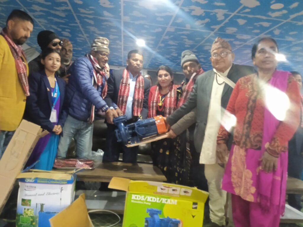 कृषकहरुलाई पानी तान्ने मोटर , मकै छर्ने मेसिन र औषधी छर्नका लागि स्प्रेटेंकीहरु वितरण गरिएको हो । झापा गाउँपालिकाको कृषि शाखाले डिल्लीराज माविको सभाहलमा बिहीवार एक कार्यक्रमका बीच ३ हजार ६ सय रुपैयाँ पर्ने औषधी छर्किने स्प्रेटेंकी ३५३ थान , २२ हजार रुपैयाँ पर्ने पानी तान्ने मोटर ९० थान र ३ हजार ८ सय रुपैयाँ पर्ने मकै छर्ने मेशिन ८० थान कृषकलाई ५० प्रतिशत अनुदानमा वितरण गरेको हो ।