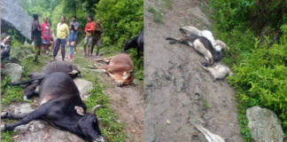 करेन्ट लागेर ताप्लेजुङको थिङलावुमा १० वटा पशुचौपाया मरे