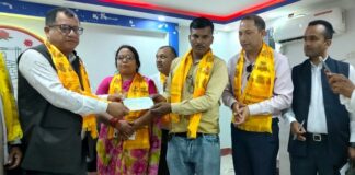 अग्निपीडित महतोलाई १३ लाखको चेक हस्तान्तरण