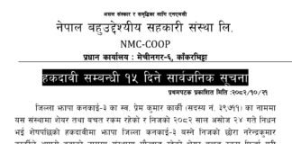 एनएमसीको हकदावी सम्बन्धी १५ दिने सूचना
