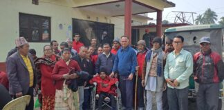 बिर्तामोड ८ का अपांग र विपन्न ज्येष्ठलाई न्यानो लुगा वितरण