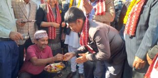 ठेकेदारलाई तुलसी पानी समाउन लगाई उपभोक्ताले खुवाए कसम