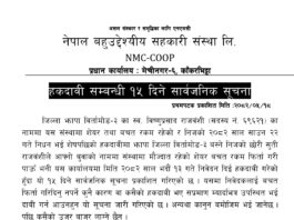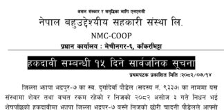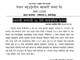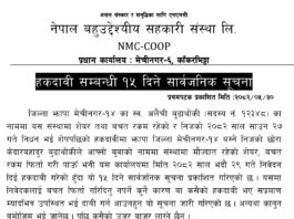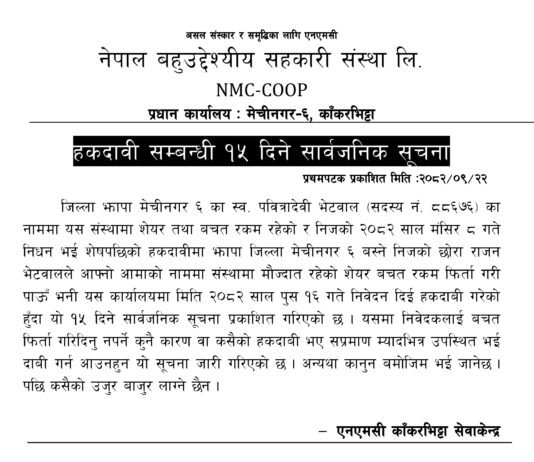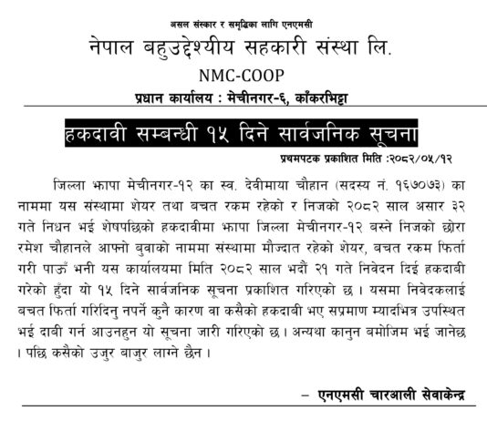 एनएमसीको हकदावी सम्बन्धी १५ दिने सार्वजनिक सूचना