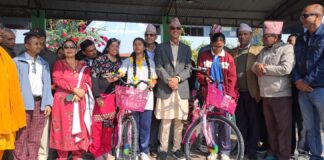 भूतपूर्व विद्यार्थी समाजको स्थापना दिवसमा विद्यार्थीलाई साइकल बितरण