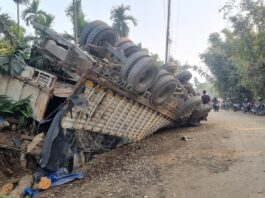 गोलिया बोकेको ट्रक बुद्धशान्तिमा पल्टियो , चारजना गंभीर घाइते